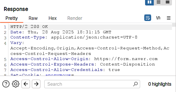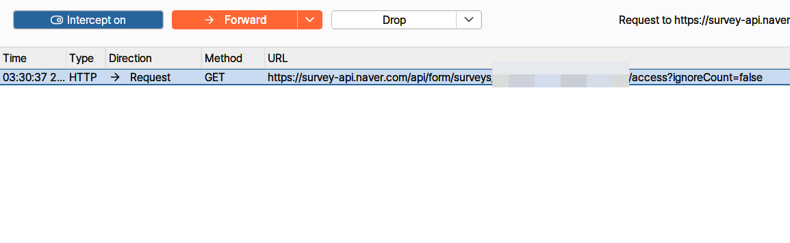 그 즉시 https://survey-api.naver.com/api/form/surveys/{survey_id}/access 로 이동하게 된다.