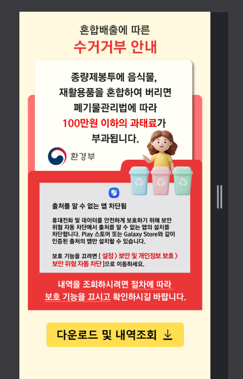 아주 친절하게 앱을 다운로드하라 안내하고 있고, 앱 다운로드가 차단되었을 때 대처법도 알려주고 있다.