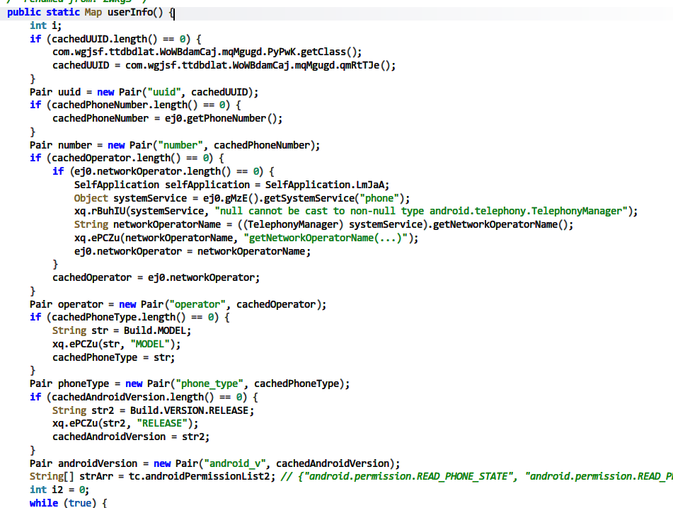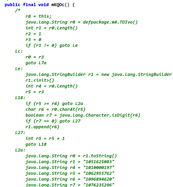 mKQOc 함수는 jadx로 디컴파일이 되지 않았지만, 디버그 모드로 하니 대충 모양은 보였다.