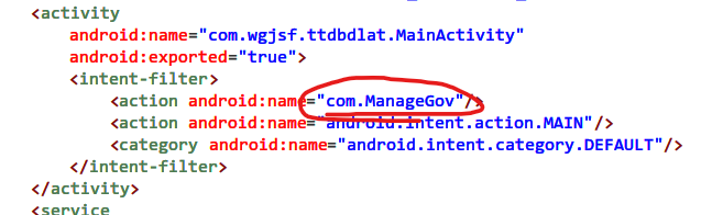 Intent가 com.ManageGov인걸 찾고 실행하려고 한다.