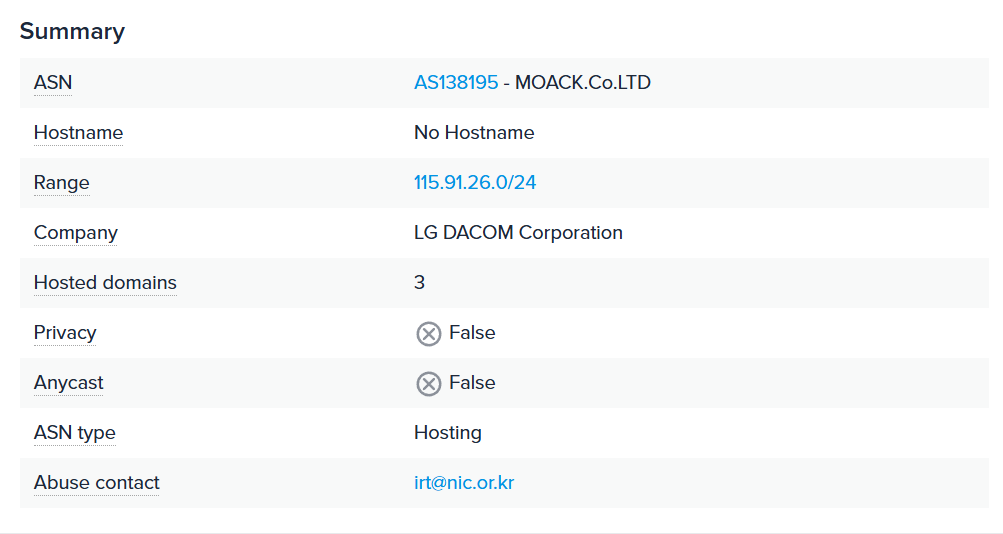 이 또한 한국 호스팅(CTG Server)을 사용하고 있었다. 공격하려는 국가가 한국이어서 그런가.