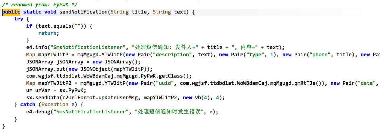 이 악성 앱은 SMS 관련 정보 수집 및 악의적인 SMS 발송 기능을 한다. (SMS Stealer)